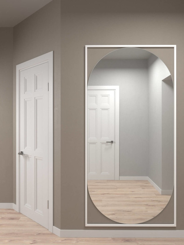 Дизайнерское настенное напольное зеркало Glass Memory Lustrous max в металлической раме белого цвета в Краснокамске